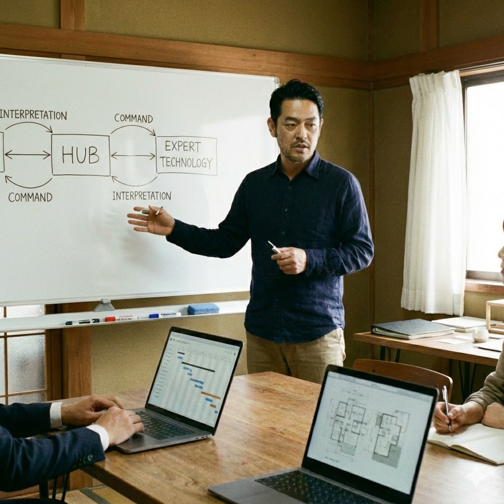 ビルメンテナンスの現場で培った「異常を察知し、最適な専門家を繋ぐ」経験を活かし、技術的な「通訳」としてプロジェクトを停滞させずに進行させます。
